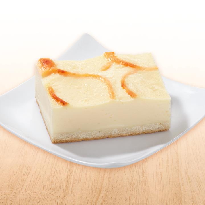 Mürbeteigboden mit Käsemasse (79%), abgeglänzt, tiefgefroren, vorgeschnitten in 20 Portionen.Conveniencegrad