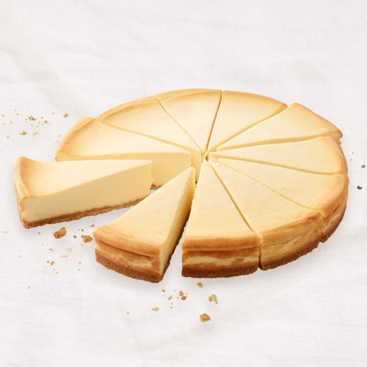 Brösel-Mürbeteigboden mit Käsemasse (80%), tiefgefroren, vorgeschnitten in 12 Portionen.