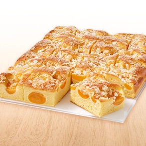 Zwischen zwei dunklen Rührteigböden befindet sich eine Fettcreme mit Erdbeergeschmack und feine Keksblättchen, hierauf eine Erdbeer-Creme (23%) und Erdbeerwürfel (4%), abgedeckt mit einem roten Rührteigboden, darauf eine helle Ceme (8%), mit roten Rührteigbodenwürfeln und heller Fettcreme (10%) garniert, tiefgeforen, vorgeschnitten in 12 Portionen.Conveniencegrad